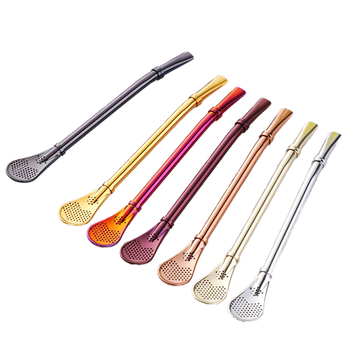 ช้อนสแตนเลสพร้อมหลอดสำหรับกวนกาแฟและชาพร้อมคุณสมบัติการกรองคู่ Yerba